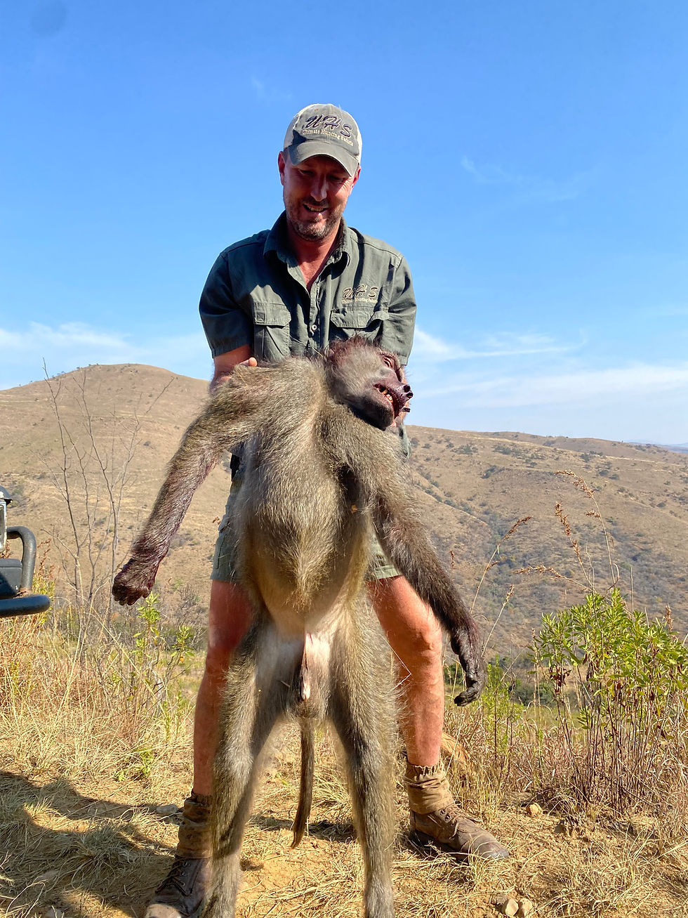 Baboon hunting involves tracking intelligent, wary troops in rocky or bushy terrain. Hunters need patience, quick reactions, and careful shot placement due to their alertness and agility.
